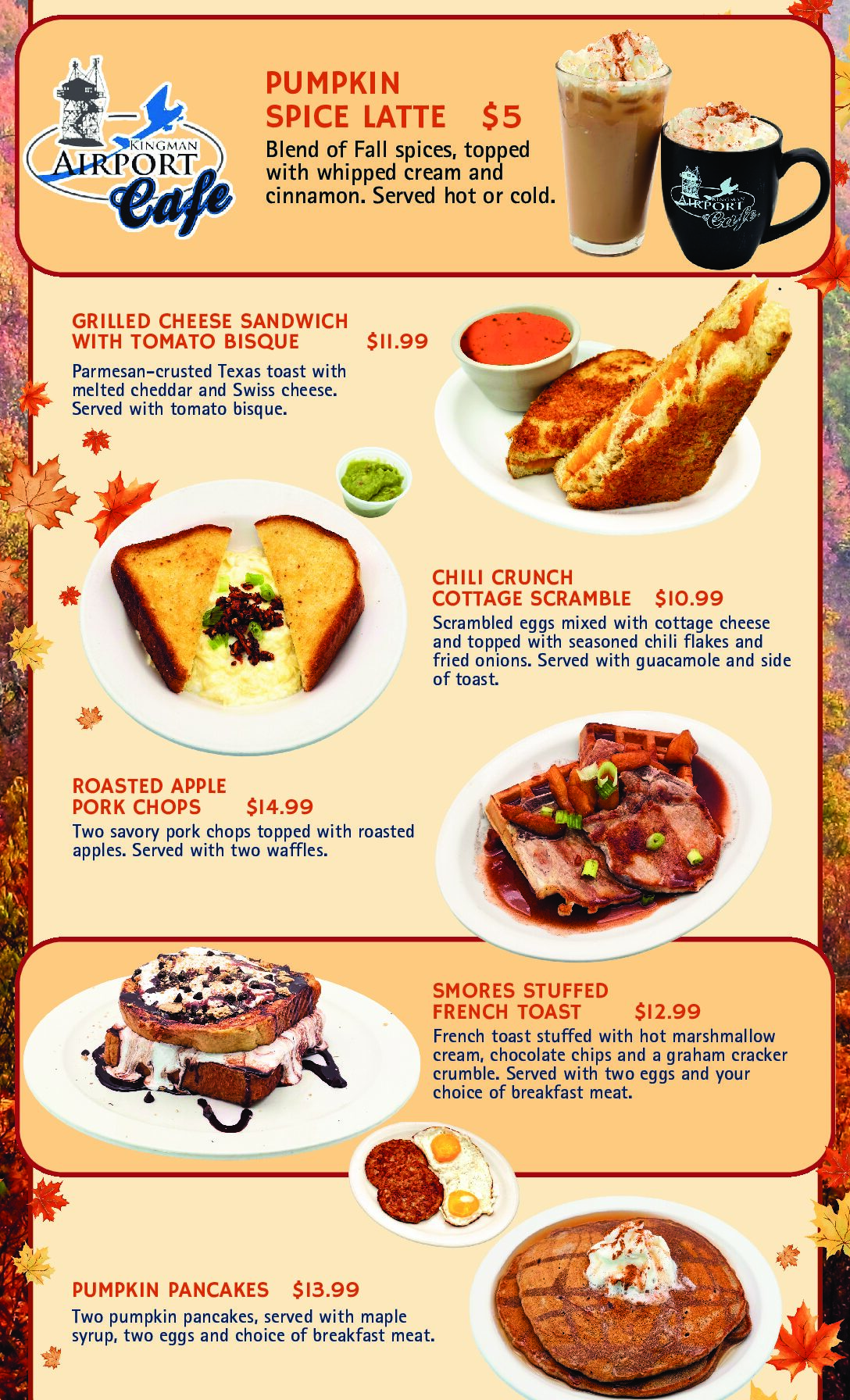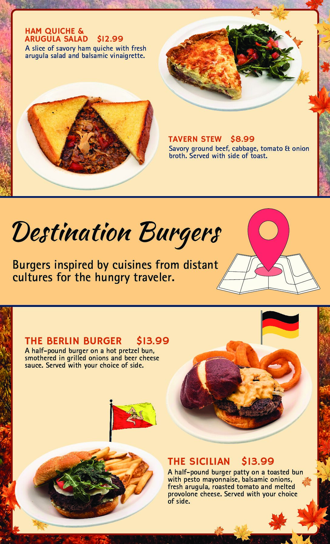 Menu Offerings and Menu Availability subject to change on Holidays and Special Event Days Seasonal Menu